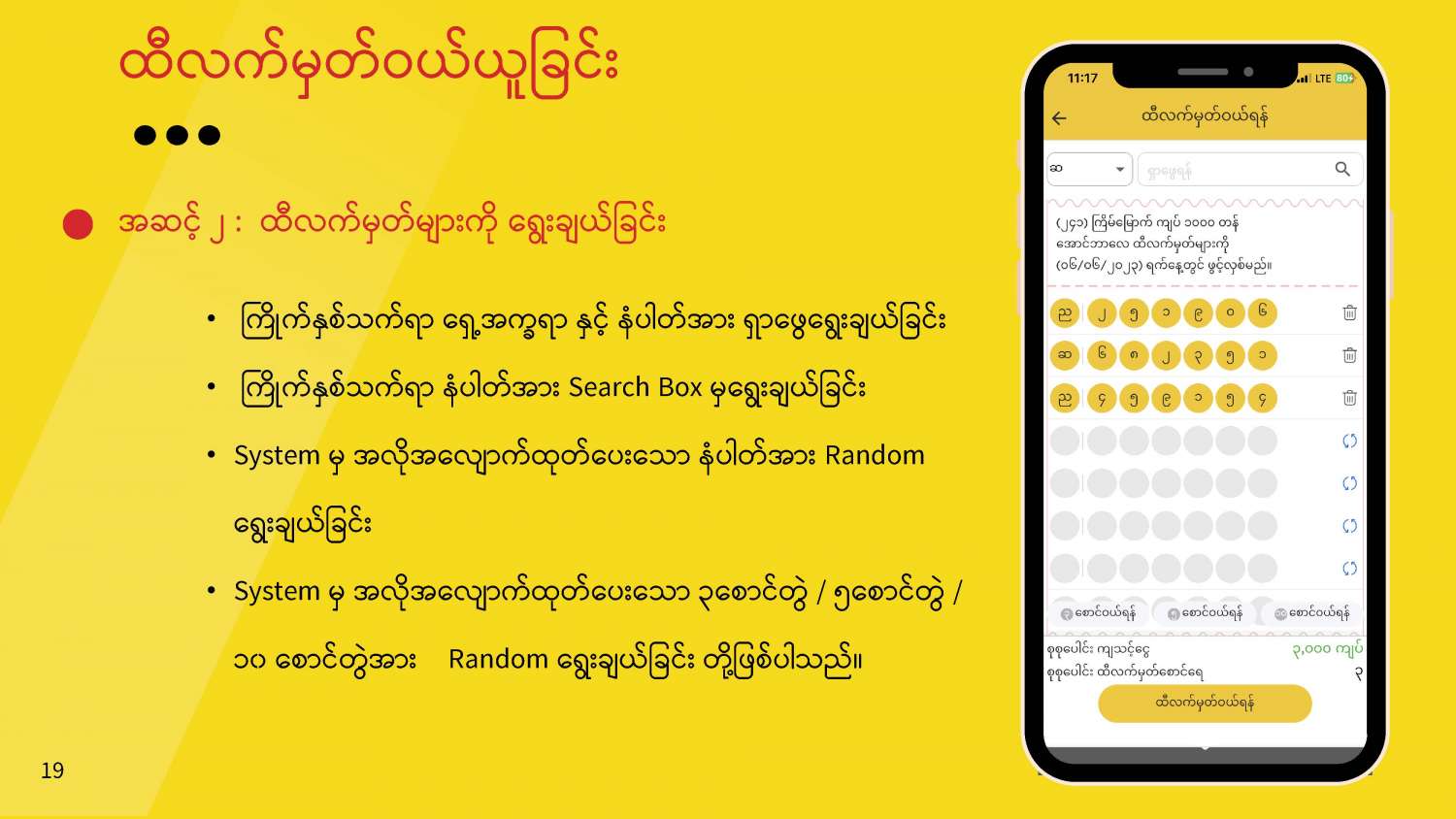 ထီဝယ်မယ်ဟု ဆုံးဖြတ်ပါက အွန်လိုင်းမှ ဝယ်ခြင်းသည် အချိန်မရွေး ပြုလုပ်နိုင်သည့် အပြုသဘောဆောင်သောအချက်ရှိပါသည်။ မဲလက်မှတ်ဆုကြီးများကို အိမ်မှနေ၍ ရယူနိုင်သည့် ခွင့်အရေးကို ဖန်တီးပေးပါသည်။